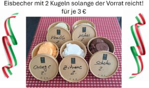 Was gibt’s Besseres an warmen Tagen als ein cremiges und erfrischendes Eis? In unserer Pizzeria bekommst du nicht nur herzhafte Klassiker – sondern auch original italienisches Eis, frisch zubereitet aus der Herstellung eines befreundeten Eismacher in der Region